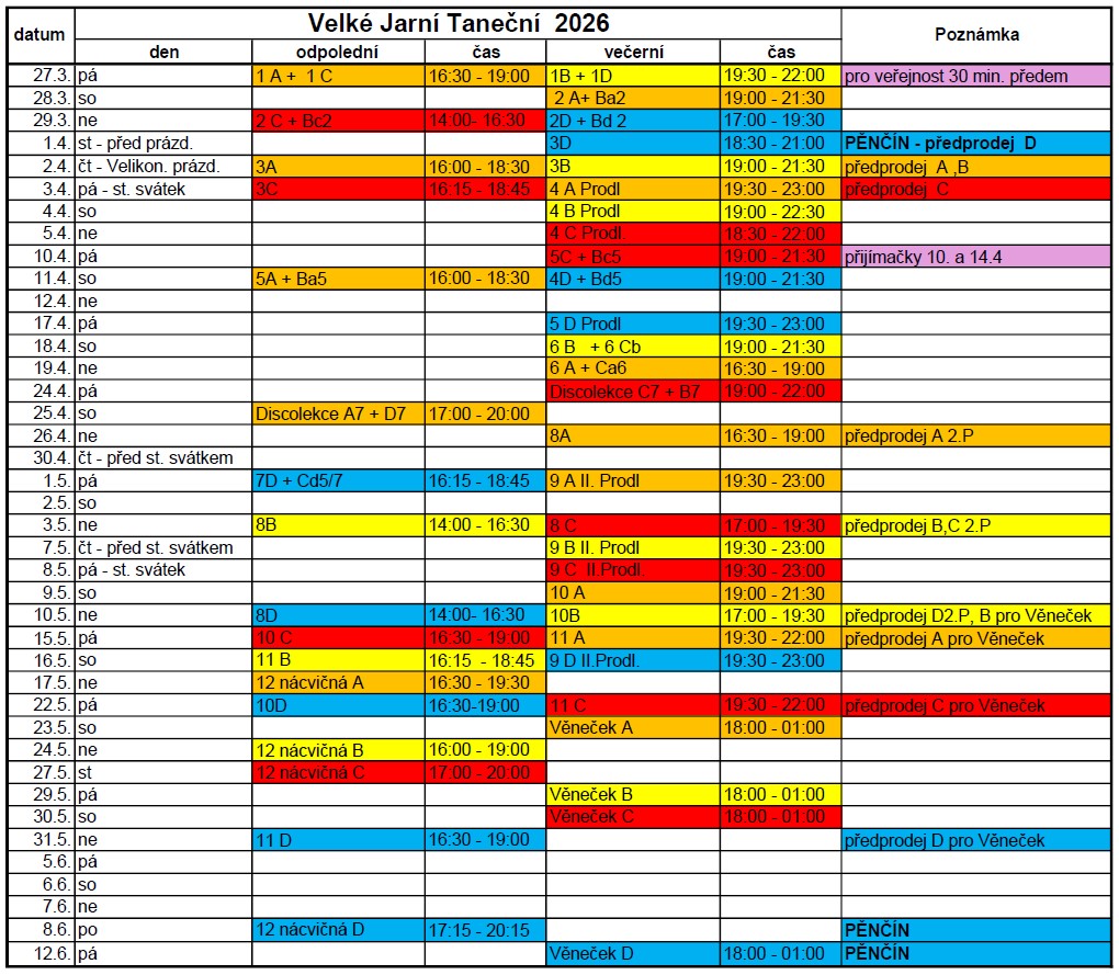 Níže naleznete časový harmonogram všech lekcí VJT 2026 a