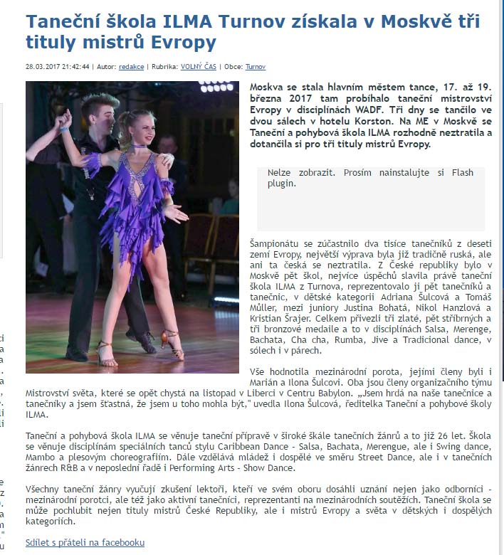 Taneční škola ILMA Turnov získala v Moskvě tři tituly mistrů Evropy